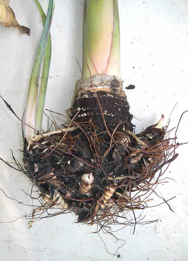 தீவிரமாகத் தாக்கப்பட்ட இலைகள் காய்ந்து வாடிவிடுகின்றன. தாக்கப்பட்ட கிழங்குகளின் செதில்களில் கருமை நிற ஸ்ட்ரோமா காணப்படுகிறது. மழைக் காலங்களில் இந்த நோய் தீவிரமாகப் பரவுகிறது. இந்த நோய் கிழங்குகளின் மகசூலில் 60 சதம் வரை இழப்பை ஏற்படுத்துகிறது.