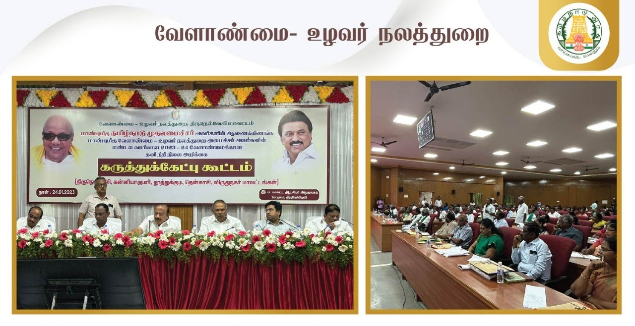 கடந்த இரண்டு ஆண்டுகளைப் போன்று, எதிர்வரும் 2023-24 ஆம் ஆண்டிற்கான வேளாண் நிதிநிலை அறிக்கையினை தயாரிப்பதற்கு முன்னர், விவசாயிகள், உழவர் உற்பத்தியாளர் நிறுவனங்கள், வேளாண் விஞ்ஞானிகள், விவசாயிகள் சங்கப் பிரிதிநிதிகள் மற்றும் வேளாண் விளைபொருள் ஏற்றுமதியாளர்கள் போன்ற பல்வேறு பிரிவுகளைச் சார்ந்த மக்களின் கருத்துக்களை கேட்டு, அதற்கேற்ப வேளாண் நிதிநிலை அறிக்கையினை தயாரிக்குமாறு தமிழ்நாடு முதலமைச்சர் அவர்கள் அறிவுறுத்தியுள்ளார்கள்.