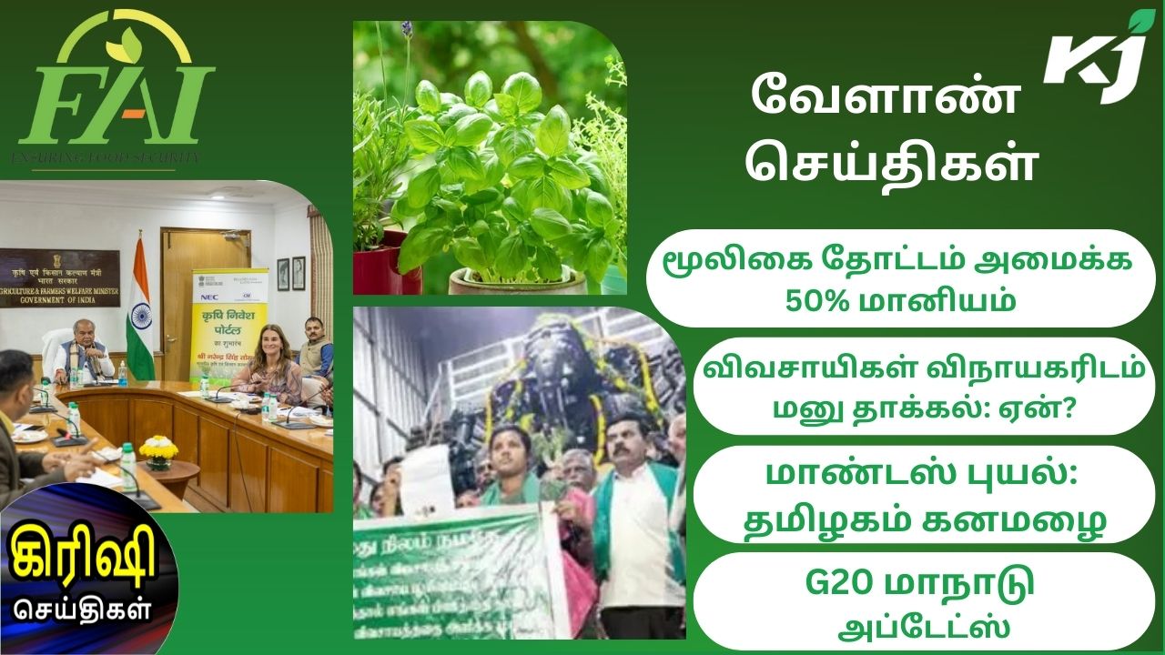 Mandous Cyclone| 50% subsidy for setting up herb garden| Farmers filed a petition to Vinayaka| Festival of lights