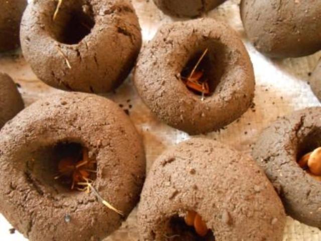 - மேலே குறிப்பிட்டுள்ள விகிதத்தில் சிறிதளவு நீரூற்றி பிசைந்து நடுவே, சேகரித்த விதைகளை வைத்து நிழலில் உலர்த்தி, பின் வெயிலில் ஒருநாள் காய வைக்க வேண்டும். இவ்வாறு செய்வதினால் விதை பந்துகளில் வெடிப்பு எதுவும் ஏற்படாமல் நன்கு காய்ந்து விடும்.