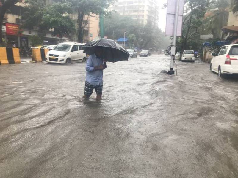 தென் மேற்கு பருவமழையின் தீவிரம் காரணமாக மீண்டும் மும்பையில் கனமழை பெய்து வருகிறது. தொடர்ந்து பெய்து வரும் கனமழையால் பல்வேறு இடங்கள் தண்ணீர் காடாக காட்சியளிக்கிறது. நேற்று ஒரே நாளில் 22 செ.மீ மழை பதிவாகியுள்ளது. சயன், கிங் சர்க்கஸ் ரயில் நிலையம், காந்தி மார்க்கெட், பாலகர் ஆகிய இடங்களில் மழை நீர் தேங்கியுள்ளது. போக்குவரத்து, ரயில் சேவை அனைத்தும் பாதிக்கப்பட்டுள்ளன. இதனால் பொதுமக்களின் இயல்பு வாழ்க்கை பாதிக்கப்பட்டுள்ளது.